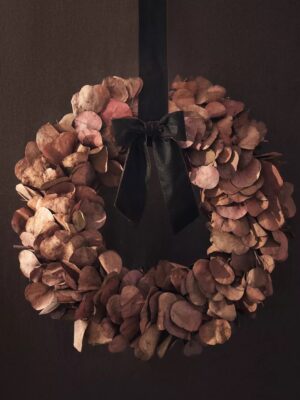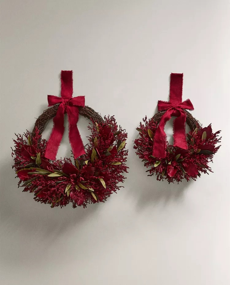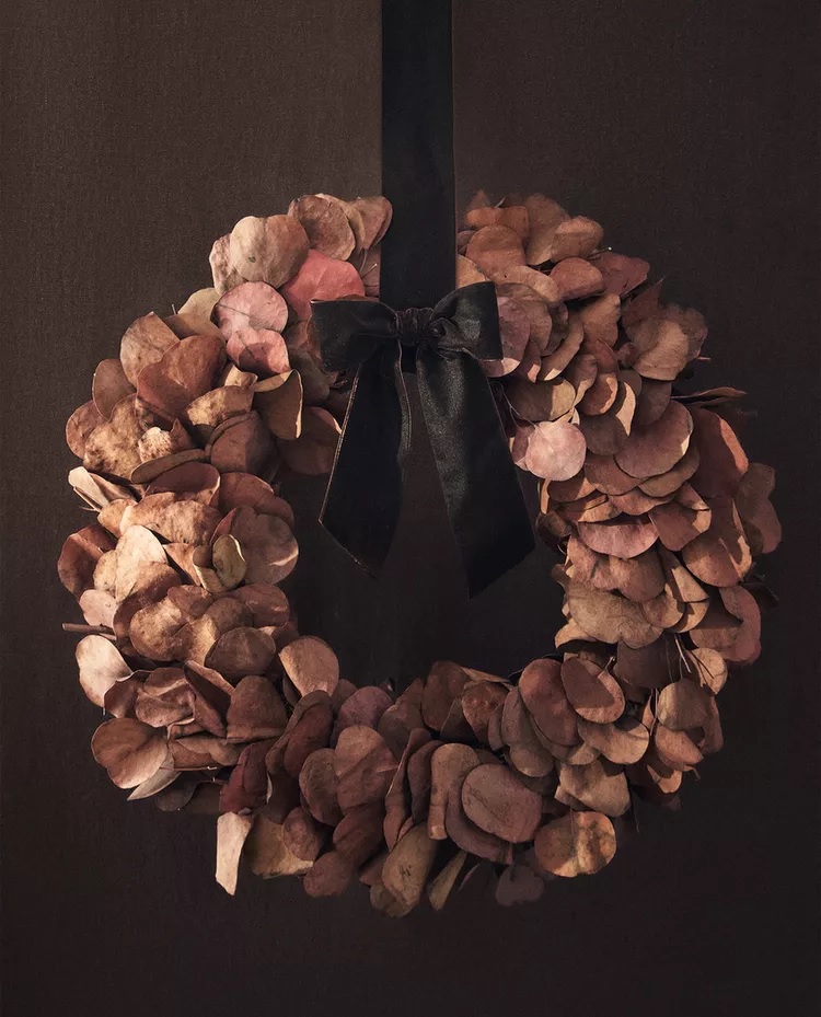 Ukrasni božićni vijenac s eukaliptusom i cvijećem, Zara Home; božićni ukrasni vijenac od eukaliptusa, Zara Home