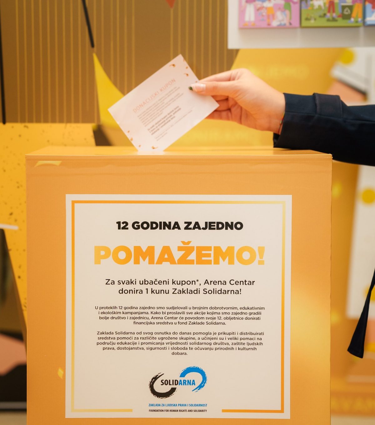Kada se kaže da Arena Centar nije samo mjesto za shopping, misli se i na njegovu  ulogu u zajednici i to kroz snažne društveno-odgovorne kampanje. Kako bi sve podsjetili da djeca i mladi imaju pravo odrastati u zdravoj i sigurnoj okolini, Arena centar i Ured UNICEF-a za Hrvatsku organizirali su, povodom Svjetskog dana djece, izložbu na temu „Klimatske promjene i njihovi učinci na živote djece i mladih”. Kroz kampanju „12 godina zajedno“ centar je podržao rad  Zaklade Solidarna, pomažući starijim sugrađanima, žrtvama nasilja i stipendirajući djecu. Tu je i važna suradnja kroz umjetničku izložbu “Ja sam snaga” Udruge žena oboljelih i liječenih od raka NISMO SAME.