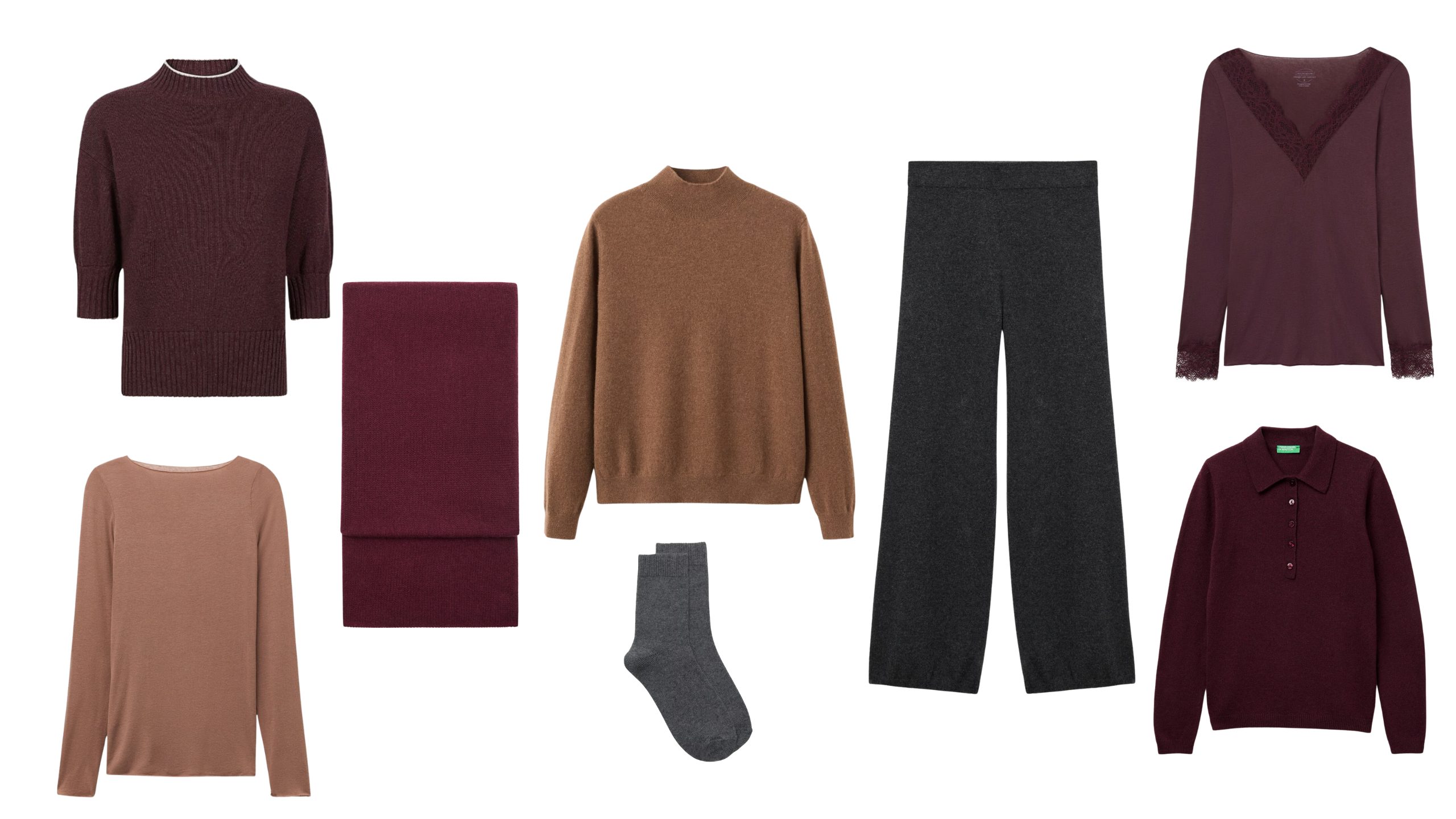 Eleventy ženski džemper od kašmira, Reserved; ultratanka majica od modalne mješavine kašmira, Intimissimi; šal od kašmira, Mango; pulover s povišenim ovratnikom od kašmira, Mango; Čarape od mješavine vune i kašmira, Mango; hlače od kašmira, Mango; Majica od mješavine kašmira, Intimissimi; Polo vesta od kašmira, Benetton