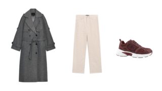 Kaput, Zara; hlače od samta visokog struka, Massimo Dutti; Guess bordo ženske tenisice, Fashion & Friends