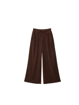 Samtane jogger hlače na vezanje, Stradivarius; samtane smeđe trapez hlače, Zara; zvonolike hlače od samta, Massimo Dutti