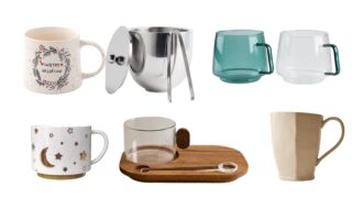 Božićna šalica, Pepco; šalica sa zvjezdicama, Pepco; metalna šalica; H&M Home; šalica s drvenim pladnjem i žličicom, Zara Home; set šalica, Jysk; keramička šalica, Zara Home