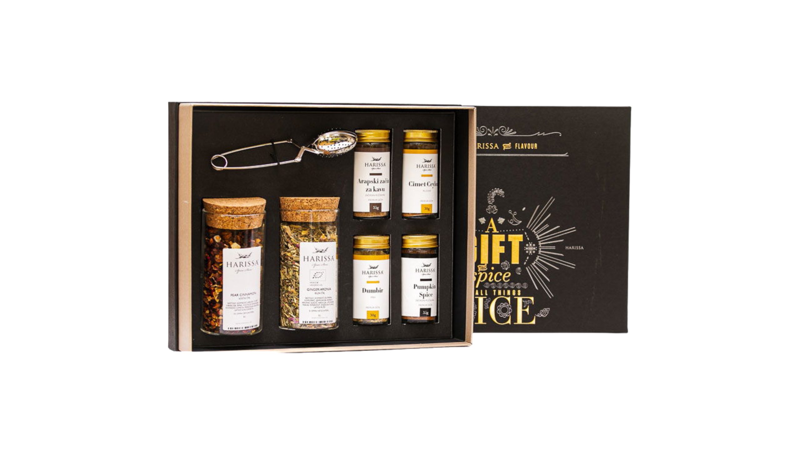 Vrijeme je blagdanskog darivanja, a Harissa, koja je poznata po velikom izboru različitih začina (uključujući i one za Golden Milk) i čajeva, pripremila je predivne poklon-pakete. Preporučujemo premium Gift Box Miris Orijenta koji uključuje voćni čaj Pear-Cinnamon, biljni čaj Ginger Aronia bio, arapski začin za kavu, pumpikin spice, ali i cimet i đumbir, koji su vam potrebni za pripremu zlatnog mlijeka.